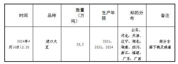 受中储粮油脂有限公司委托,2024年41613:30在国家粮食和物资储备局粮食交易协调中心及联网的各省(区、市)湖北粮网组织开展进口大豆竞价交易,请交易会员通过湖北粮网官网()“用户中心”,登录国家粮食交易平台,在专场列表中选择“进口大豆竞价销售交易”参与交易。现就有关事项公告如下(重点提示内容详见加粗字体部分)