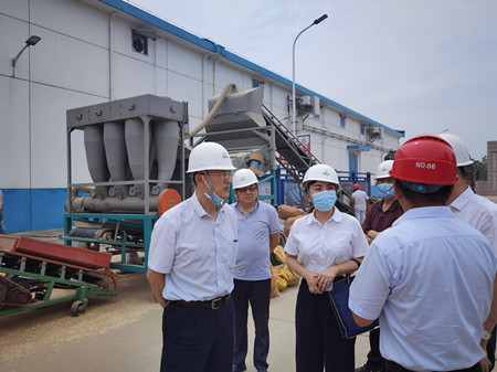 6月9日下午,省粮食局党组成员、副局长唐学军赴基层党建工作联系点湖北粮网下属企业稻米中心调研,查看了稻米中心阳逻库区小麦收购现场和金控华粮物流项目施工现场,听取了交易中心党总支书记、主任吴萍关于落实巡视整改、粮食交易平台建设、政策性粮食收储、项目建设、中心和下属企业安全生产、党建工作等方面工作汇报,实地调研了解了稻米中心储备粮轮换、储备油集中管理和金控华粮物流建设项目推进情况,并就如何加强基层企业党建工作进行了指导。